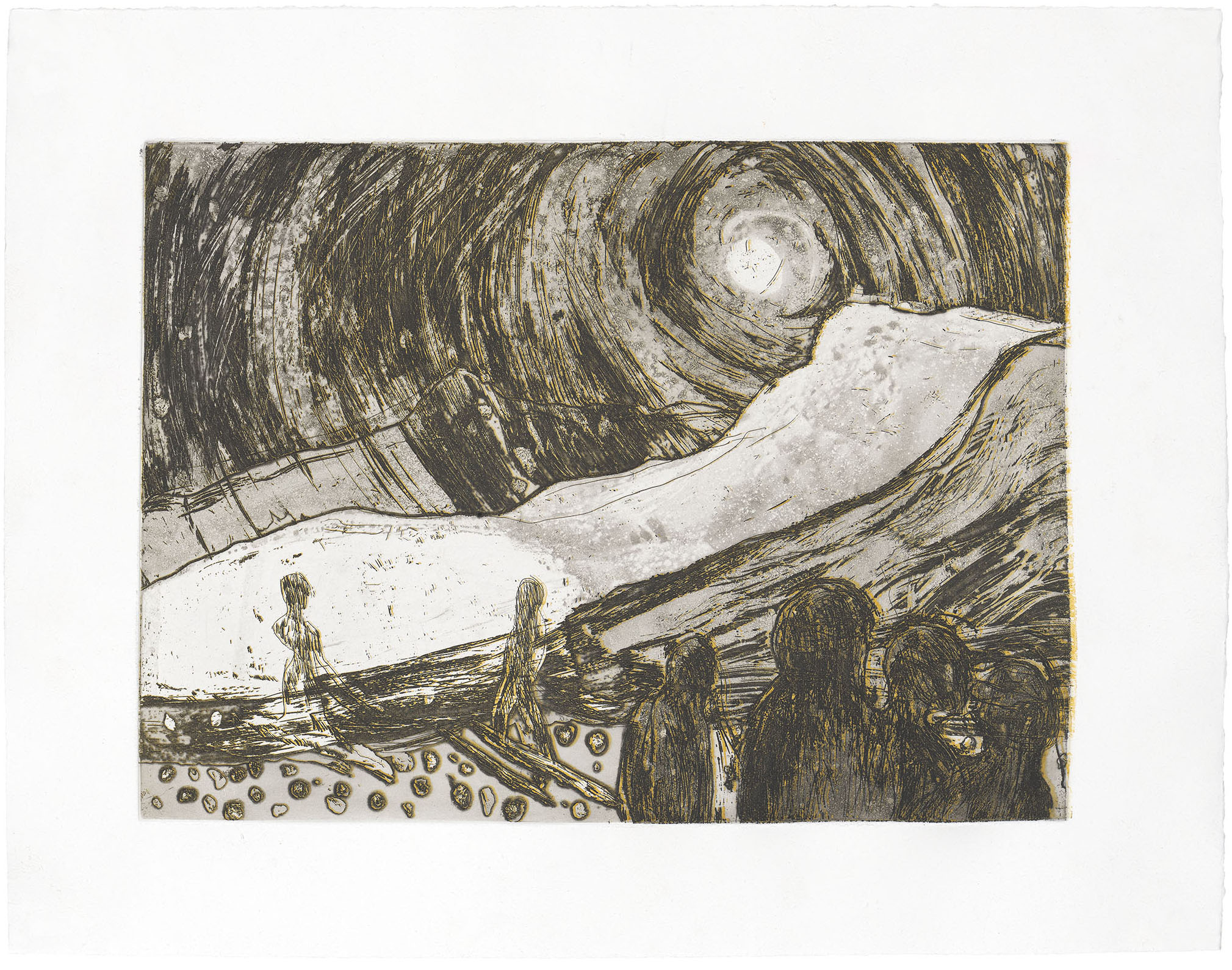 An avid winter sportsman, Peter Doig lived in Zermatt for six weeks in 2020 and for four months in 2021, working out of a studio on the mountain. With his inventive, painterly approach, the artist uses alpine imagery and traditional printmaking techniques to investigate landscape, material, and form. This diverse series of etchings reflects a self-referential process of experiment and innovation in which works continuously evolve into their final form. Together, this body of work pays homage to Doig’s passion for skiing and connection to Zermatt, while also referencing a rich tradition of alpine painting in Western art that began in the 15th century and was carried forward by masters such as Pieter Bruegel the Elder, Emil Nolde, and Ferdinand Holder.